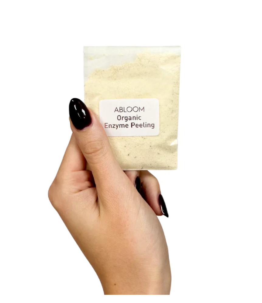 Optionele Enzym Peeling: Als uw huid er dof, bleek of vermoeid uitziet, is de kans groot dat dit wordt veroorzaakt door een ophoping van dode huidcellen, overmatig talg en vuil. Als gevolg hiervan kunnen voedingsstoffen niet volledig door de huid worden opgenomen vanwege een gebrek aan goede bloedtoevoer naar de huid. Enzymen uit Papaja en Ananas verwijderen deze overtollige ophopingen. Het 100% organische enzymmasker van Abloom bevat fytonutriënten en krachtige antioxidanten uit aardbeien, bosbessen, bramen, frambozen en pruimen om de huid te verhelderen en te verzachten. Onze zeer bessenpeeling laat uw huid jeugdig en fris aanvoelen en onthult haar natuurlijke stralende glans! Ons advies is om deze peeling één keer per week te gebruiken als onderhoud van de huid.