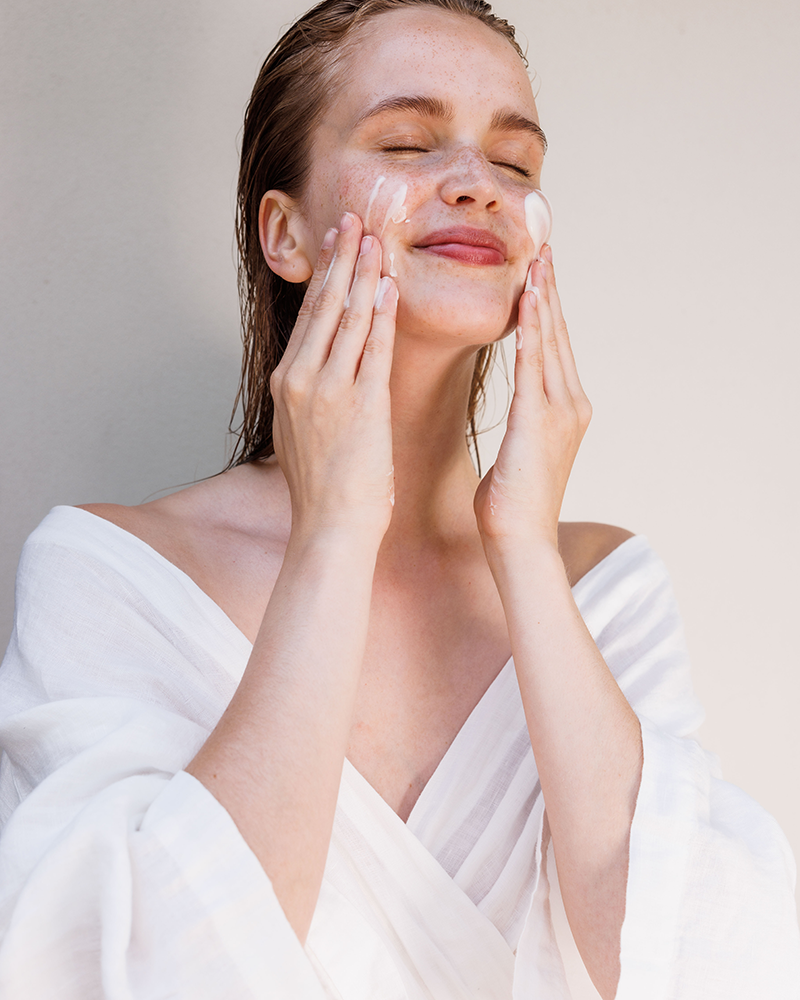 1. Breng de Natuurlijke Reinigingsmelk 's ochtends en 's avonds ruim aan op de huid met je handen of met een licht vochtig watje en masseer licht in. Laat even intrekken en neem af met wat water.